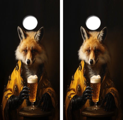 Steam Punk Fox Drinking Beer Cornhole Board Skin Wraps FREE LAMINATE