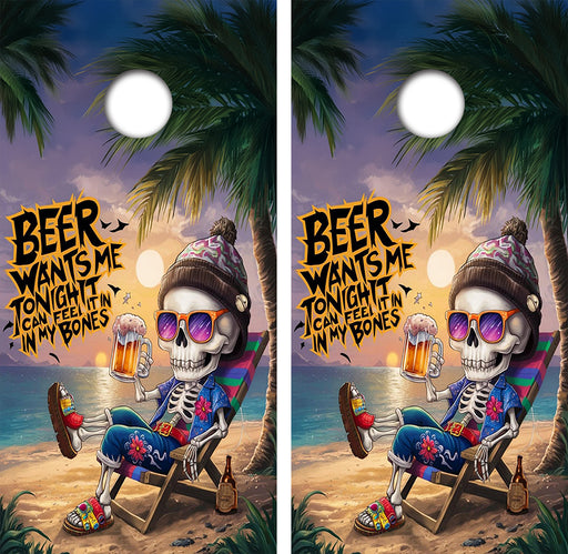 Beer Skeleton Cornhole Wood Board Skin Wrap