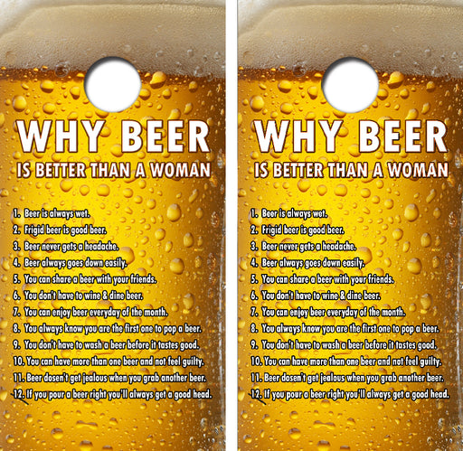 Why Beer Is Better Cornhole Wrap Decal with Free Laminate Included
