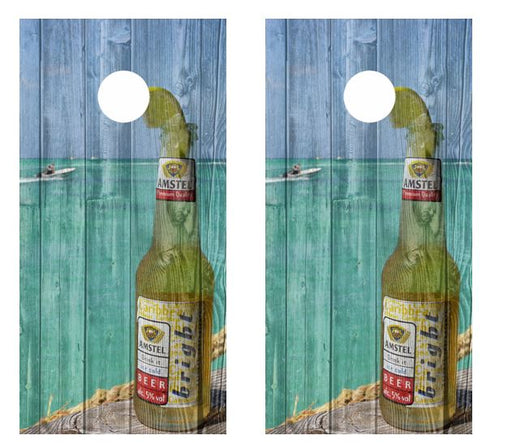 Amstel Beer Bottle Barnwood Cornhole Wood Board Skin Wrap