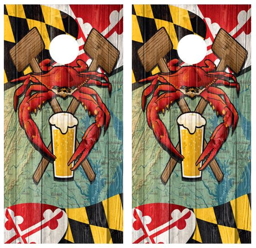 Maryland Beer Crab Flag Cornhole Wood Board Skin Wraps