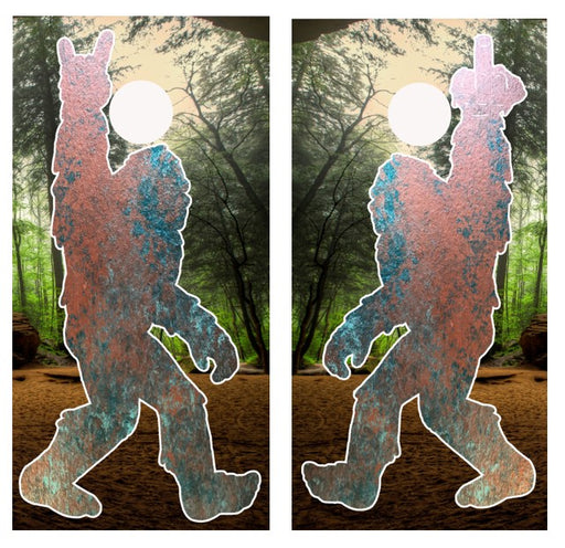 Bigfoot Finger & Devil Horns Cornhole Wrap Decal with Free Laminate Included