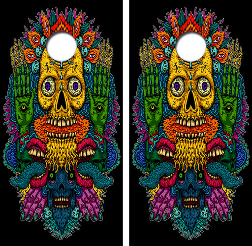 Psychedelic Skulls Cornhole Wrap Decal with Free Laminate Included