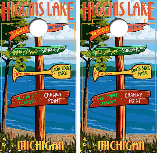Higgins Lake Michigan Cornhole Wood Board Skin Wraps FREE LAMINATE