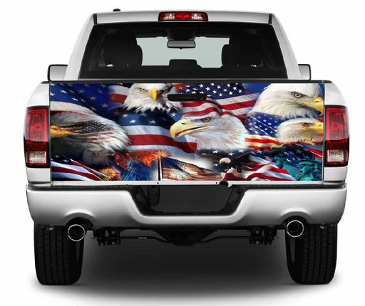 Patriotic Bald Multi Eagle Tailgate Wrap Vinyl Graphic Decal Sticker